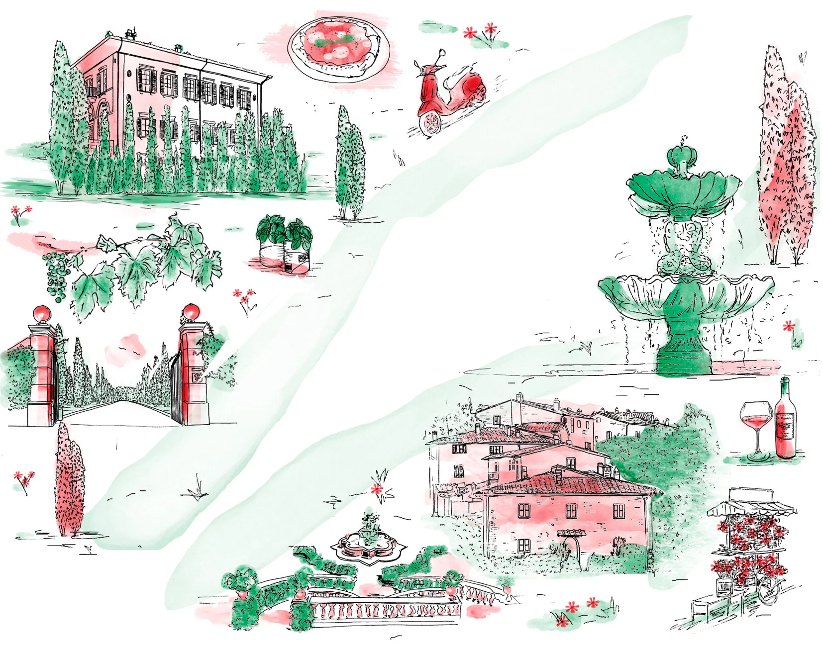 Illustrations commissioned for the Save the date of a wedding organized in Florence.